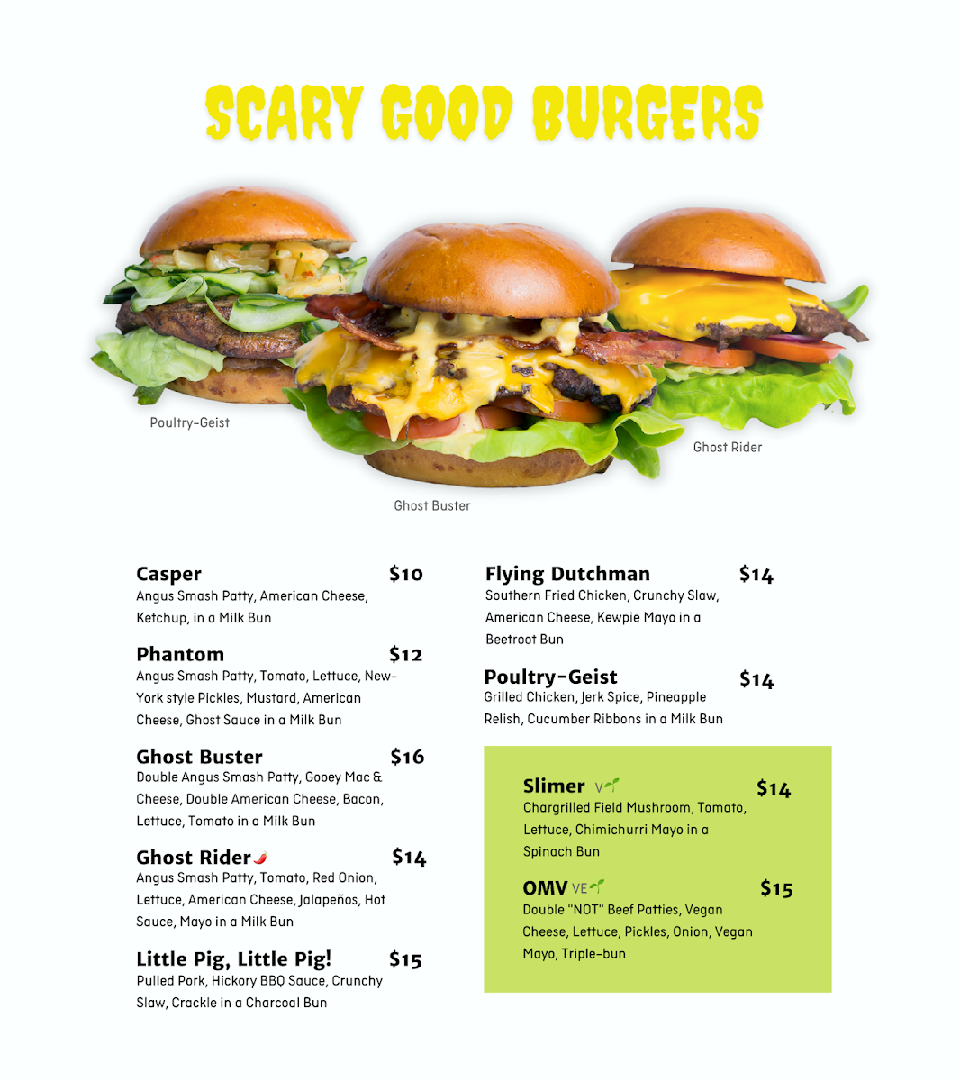 Double Angus patties, lettuce, tomato, gooey mac & cheese, double American cheese, bacon & ghost sauce