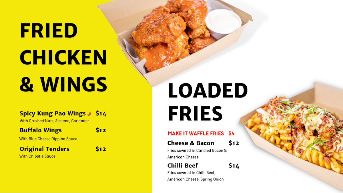 Fries covered in Chilli Beef, American Cheese, Spring Onion